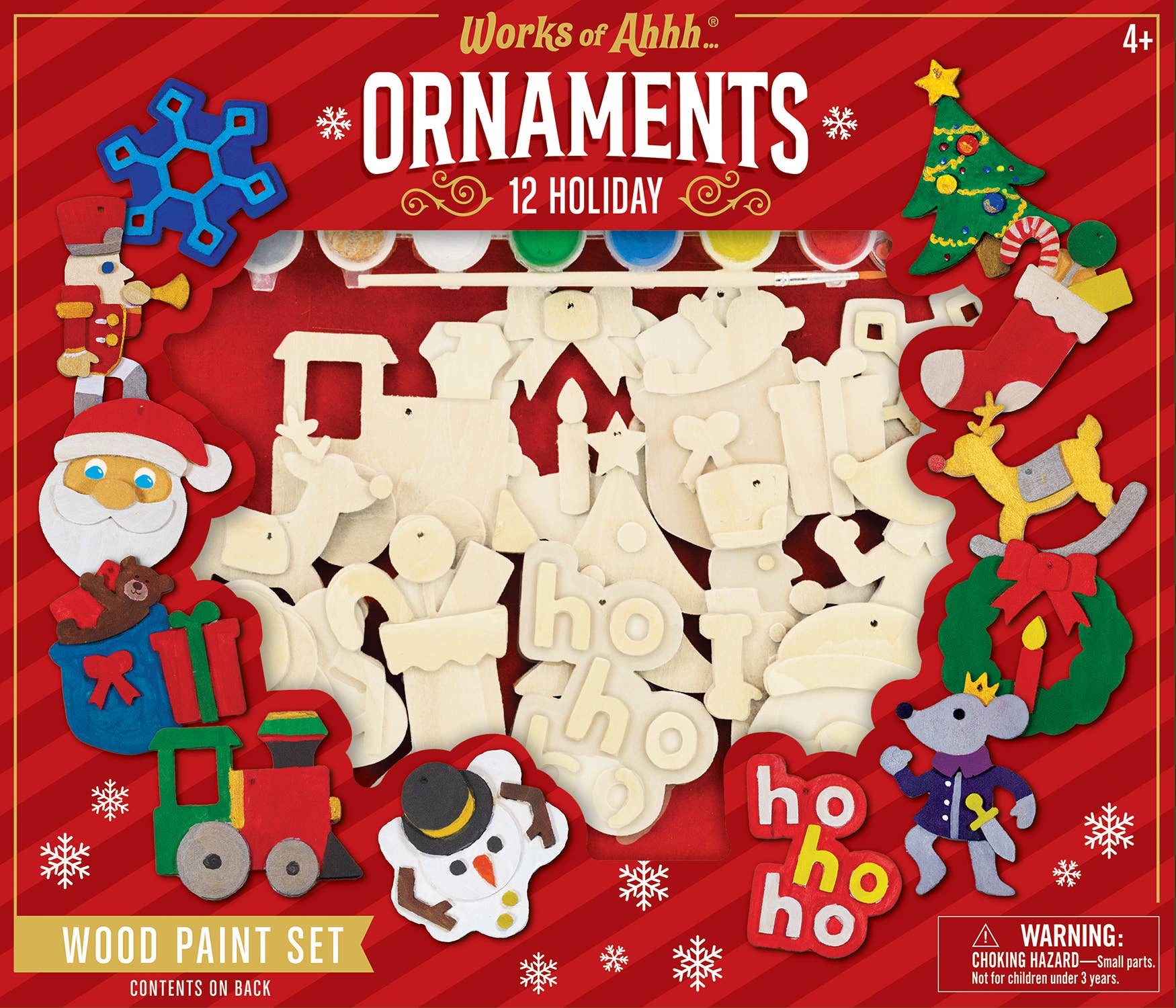 This 12 piece Holiday Ornament Wood Craft & Paint Kit is made of real wood, and includes everything you need to create a beautiful work of art! The Nativity Wood Craft & Paint Kit is the perfect gift for every art loving kid! It includes 12 wood holiday ornaments, 30 gem stones, 7 feet of cording, 5 non-toxic acrylic paint tubs, 1 non-toxic glitter glaze tub, 1 non-toxic metallic gold finish, 1 non-toxic metallic silver finish, 2 artist-quality paintbrushes, 1 instruction sheet with painting guide!