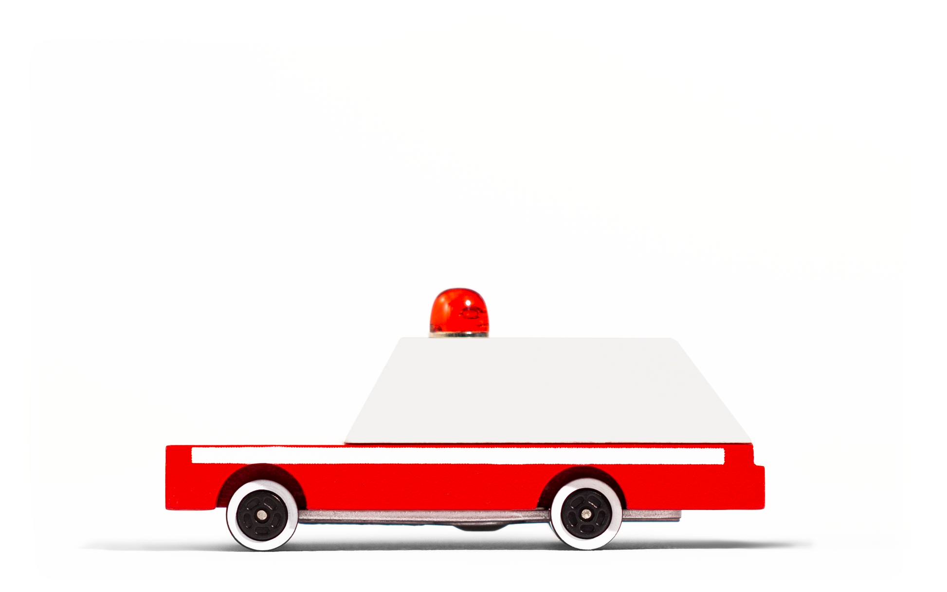 We’ve got a mini medic here to lend a helping hand! This Red and White Candycar Ambulance is first on the scene.