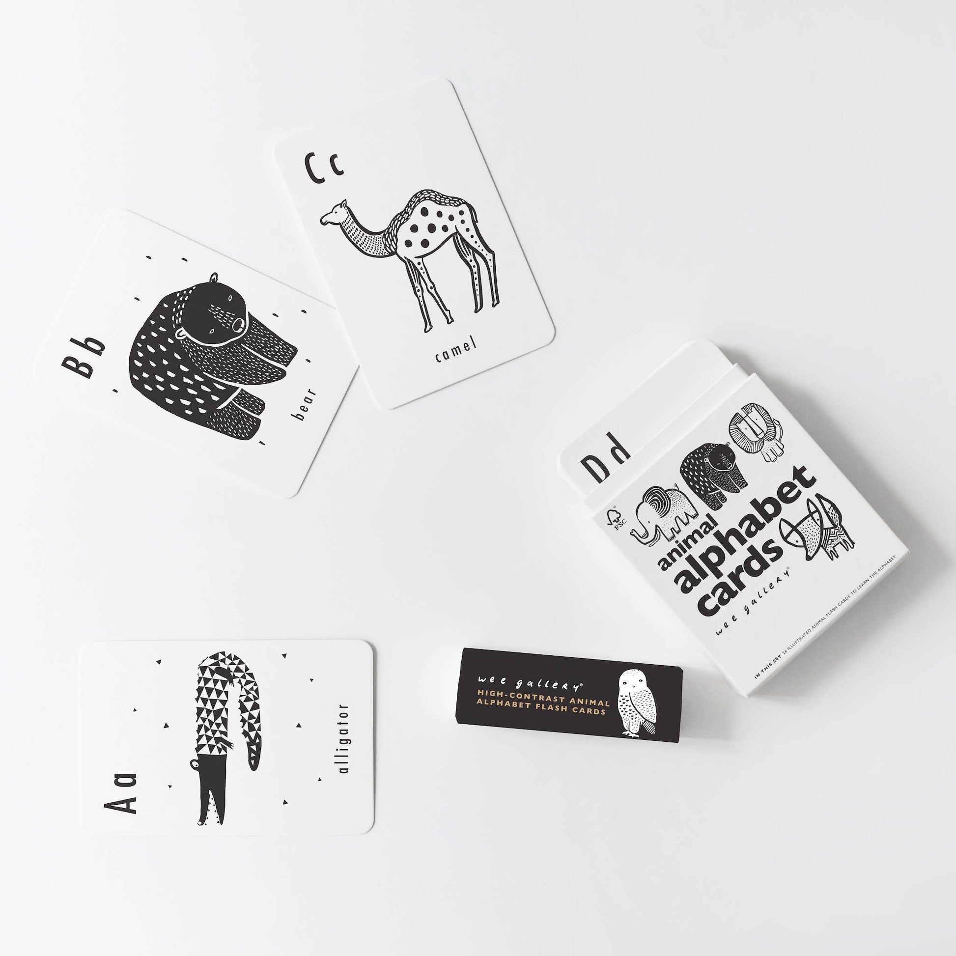 Wee Gallery Animal Alphabet Cards are the perfect gift for newborn baby, toddler, or preschool age kids. Designed to aid in cognitive brain development, learning, focus, and memory skills - with an artistic touch. The high-contrast nature illustrations create a mesmerizing sensory display for babies, while the bold letters create a delightful alphabet learning experience for older children and can be used as flashcards when reading skills begin.