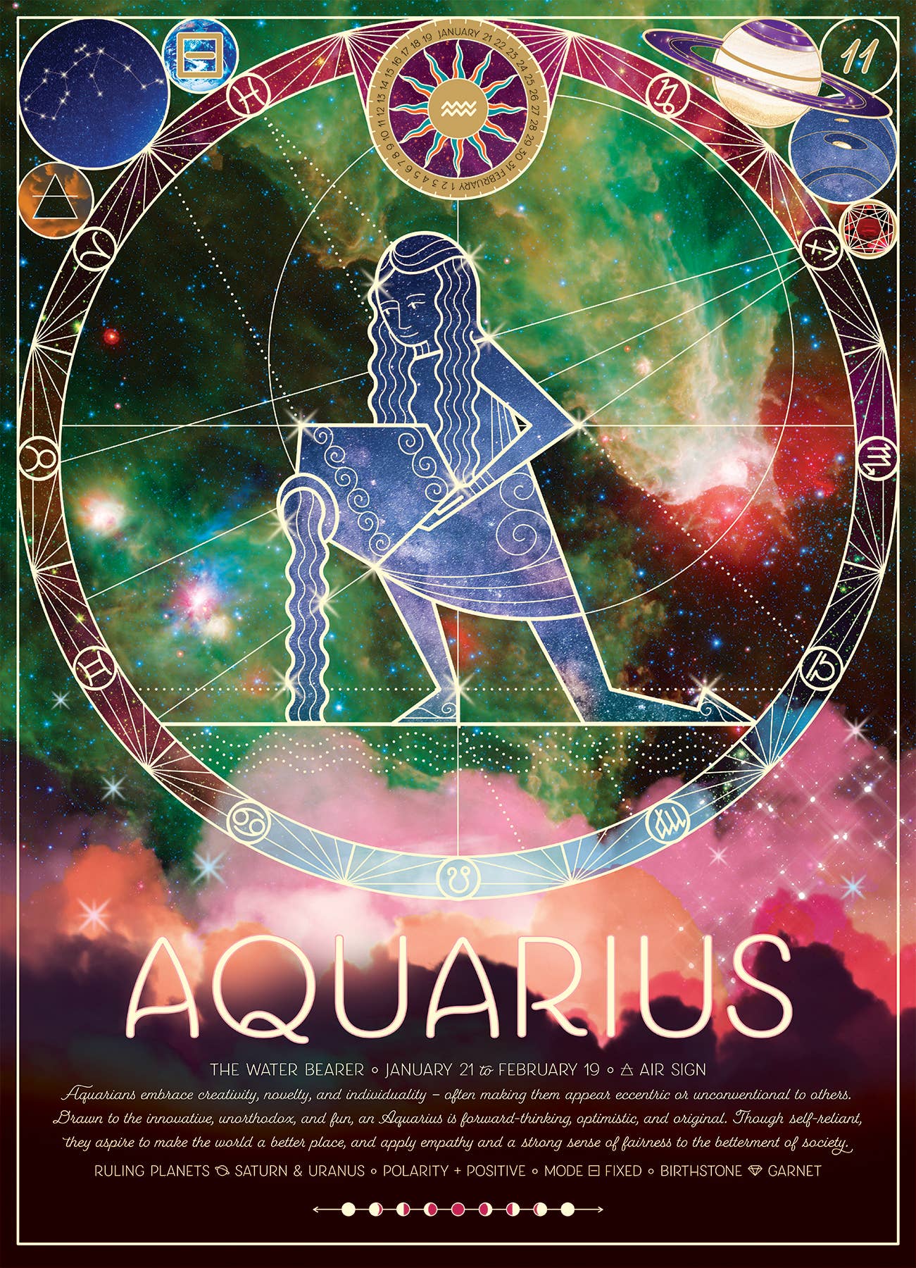 Aquarians embrace creativity, novelty, and individuality - often making them appear eccentric or unconventional to others. Drawn to the innovative, unorthodox, and fun, an Aquarius is forward-thinking, optimistic, and original.