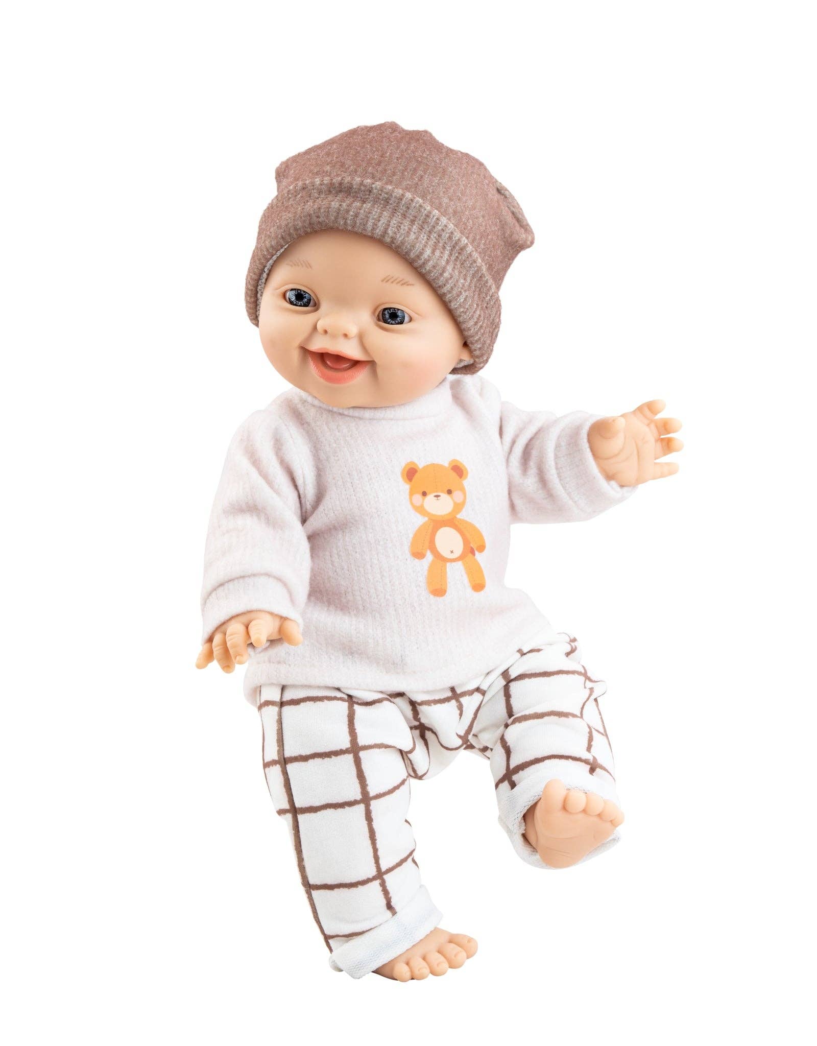 - Clothing included (teddy bear sweater, plaid pants and hat)