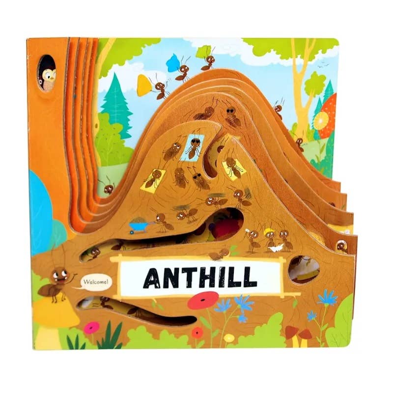 Teach children what it would be like to live in an anthill! This one-of-a-kind book features sturdy layers as you explore what really goes on underground. Designed with educational captions and vocabulary words in an interactive book of adorable illustrations. Hardcover, 16 pages