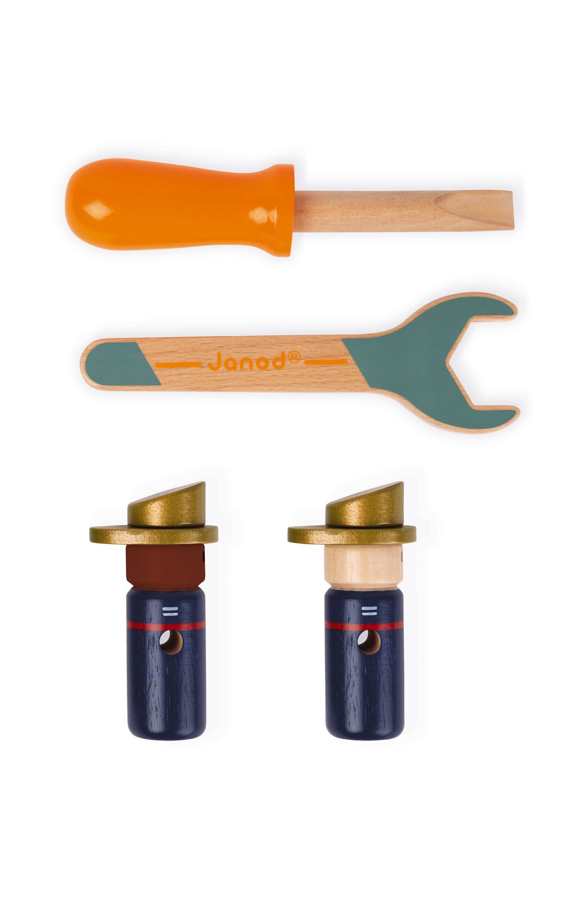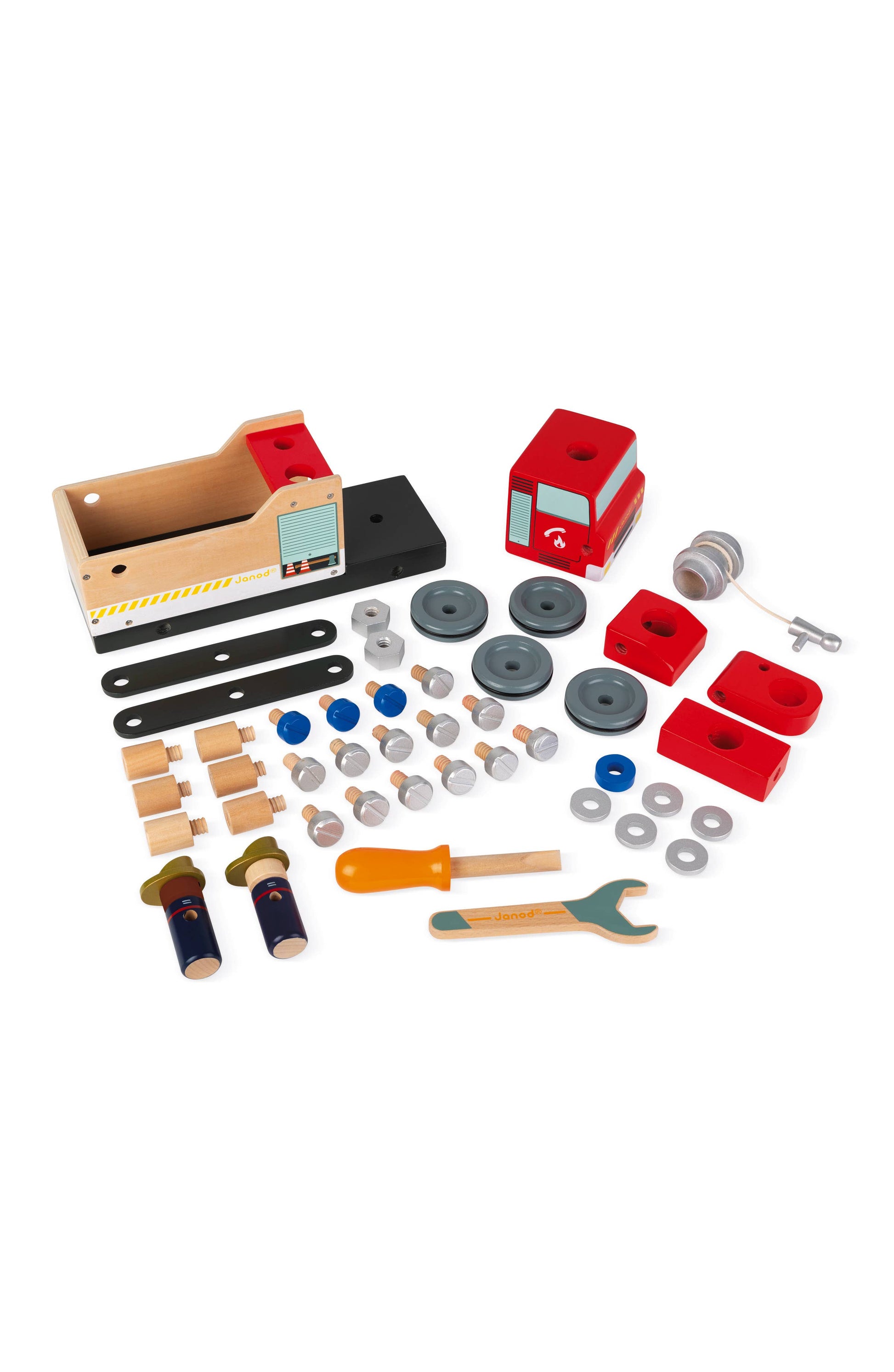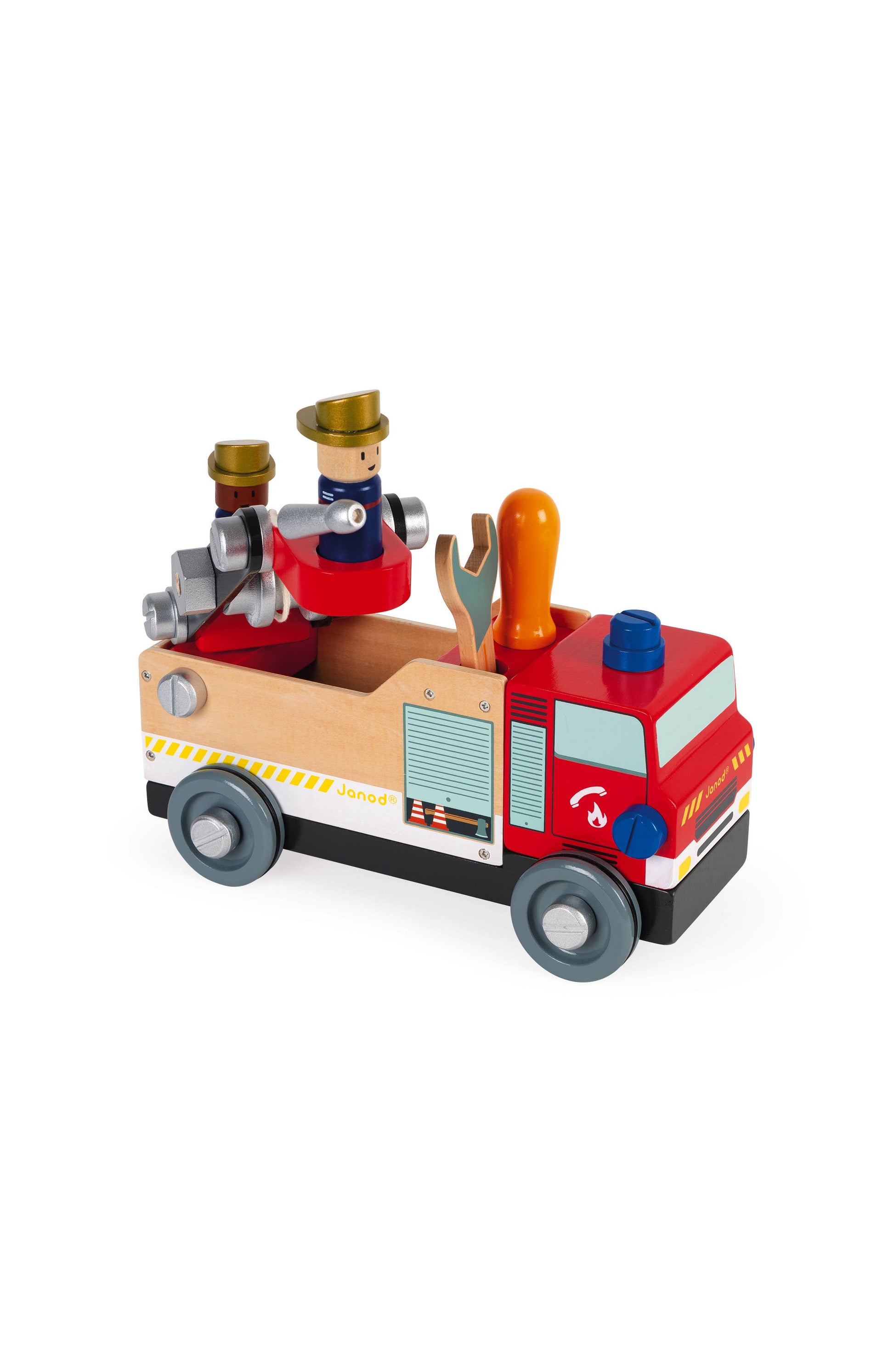 For children aged 3-8 years. Wooden toy. 2 toys in 1: a construction game to reassemble a magnificent fire engine using the many nuts, plates, and screws provided. Once assembled, children can let their imaginations run wild to create grand adventures with this fully-fledged toy! Comes in 45 pieces, with 2 tools 2 fire fighters, and instructions for assembly.