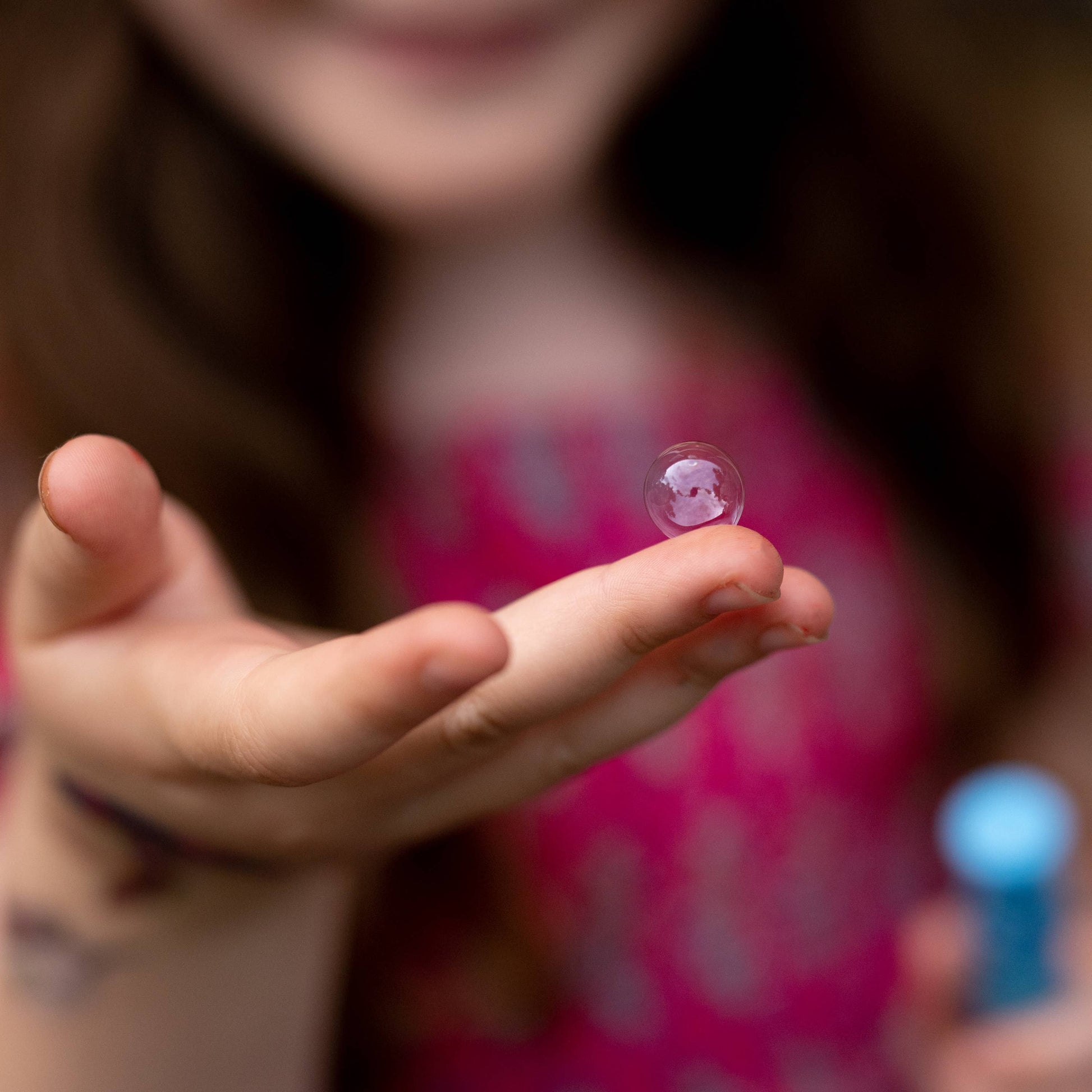 These bubbles are heroic! How's that? Well, these bubbles can be touched and they won't pop. These are tough bubs. You can make bubbly stacks or even bubble sculptures. Sometimes you find a little bubble weeks later, just sitting there being... not your basic bubble. Physics made adorable!