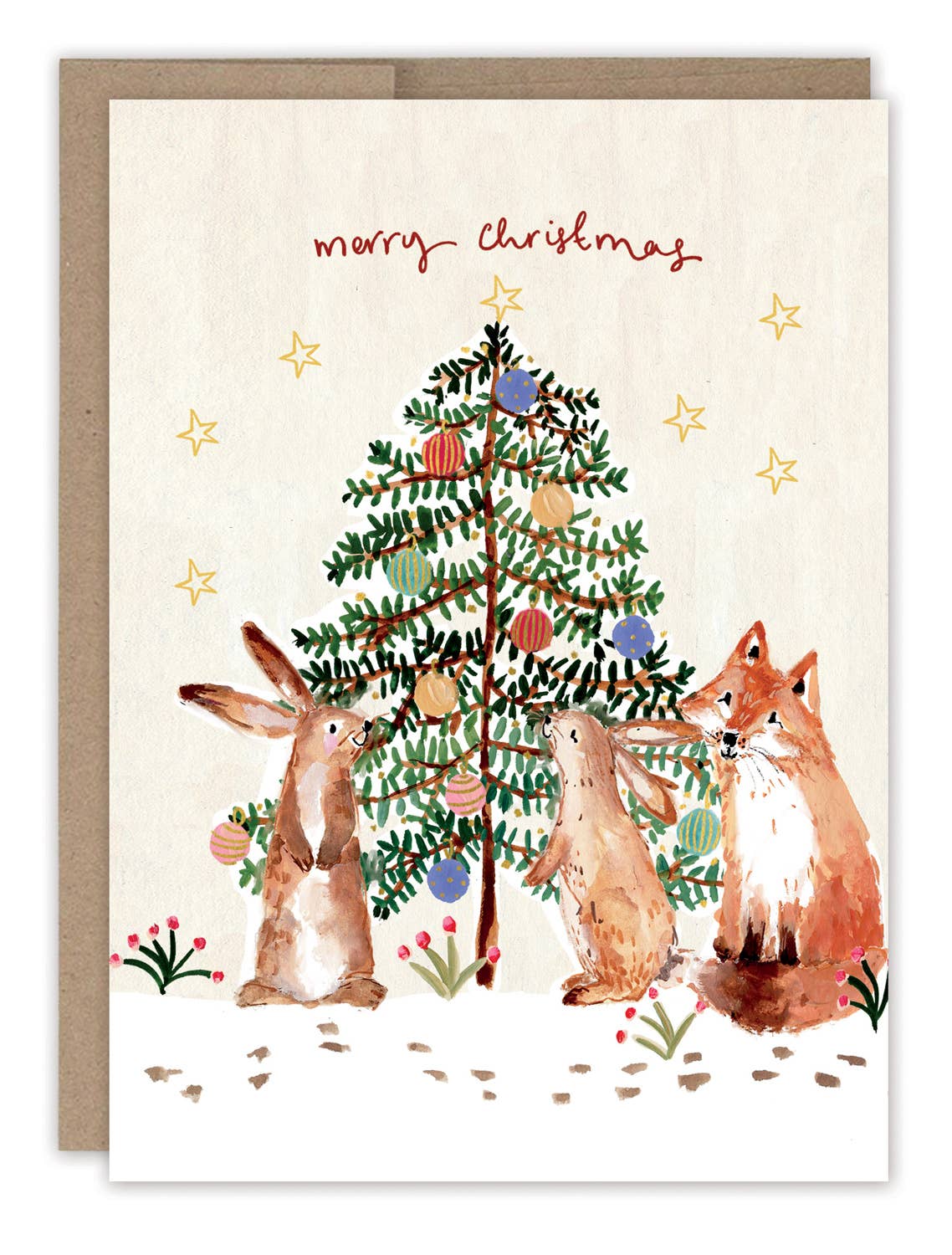 Bunnies & Fox Christmas Tree Holiday Card