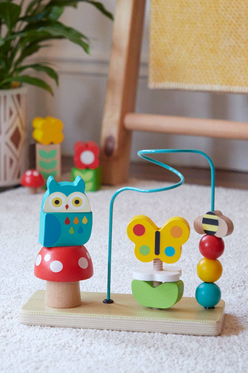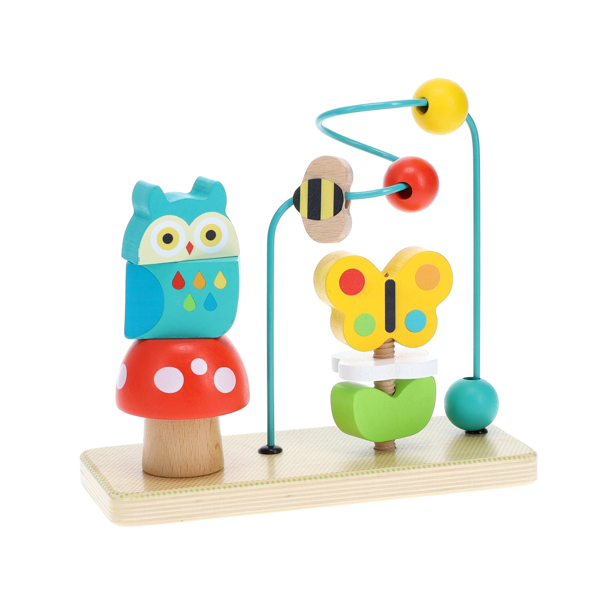 Nurture a love of nature from an early age with this Busy Garden Wooden Activity Trio from Petit Collage. The multi-activity play station features sweet garden-themed pieces. Your little one can spin the flower to meet the butterfly, slide the bee to land on the beads, and stack their new owl friend on a mushroom perch, building dexterity while having fun.
