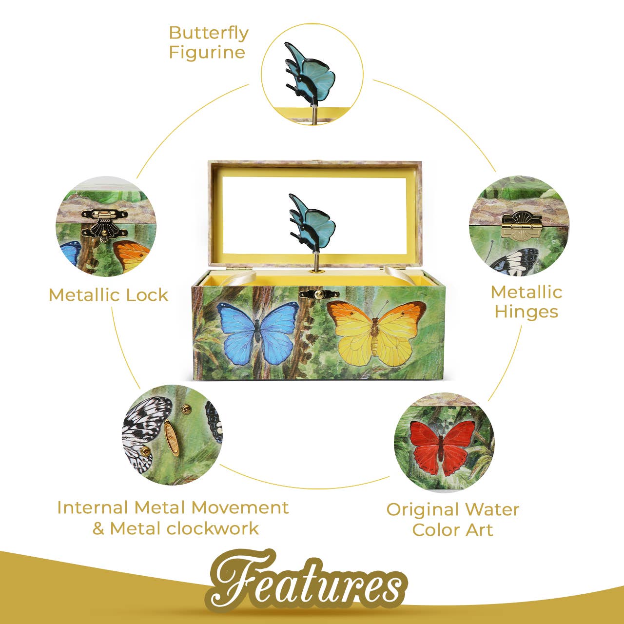 Retailers: Stock this top-selling butterfly jewelry box for Christmas 2025 season. Features spinning butterflies, velvet-lined compartment, watercolor finish, and large mirror. Measures 6x4x6 inches - compact size ideal for sterling silver jewelry, charms for jewelry making, or small treasures.