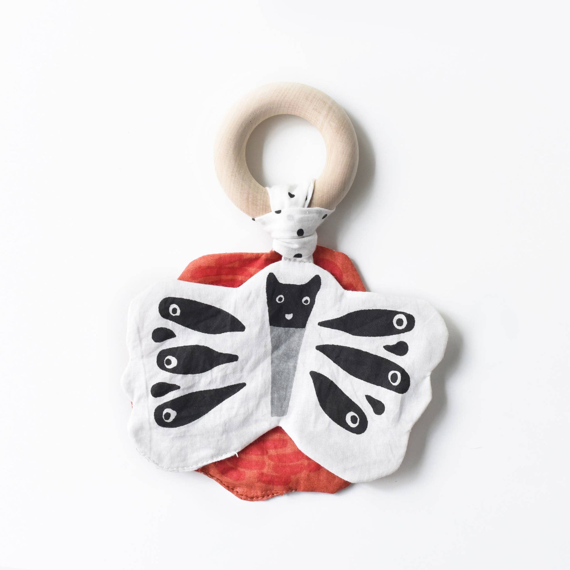 With the combined excitement of gentle crinkle paper sound stimulation, a smooth eco certified maple wooden teething ring, and adorable garden butterfly and flower design, this crinkle toy is sure to be one of baby and mom’s favorite things! Our teethers are lightweight and soothing for baby, while providing a substantial grip with both the maple wood ring and the natural texture of the organic cotton and crinkle. Multiple textures provide ideal teething surfaces and motor skills stimulation for your baby.