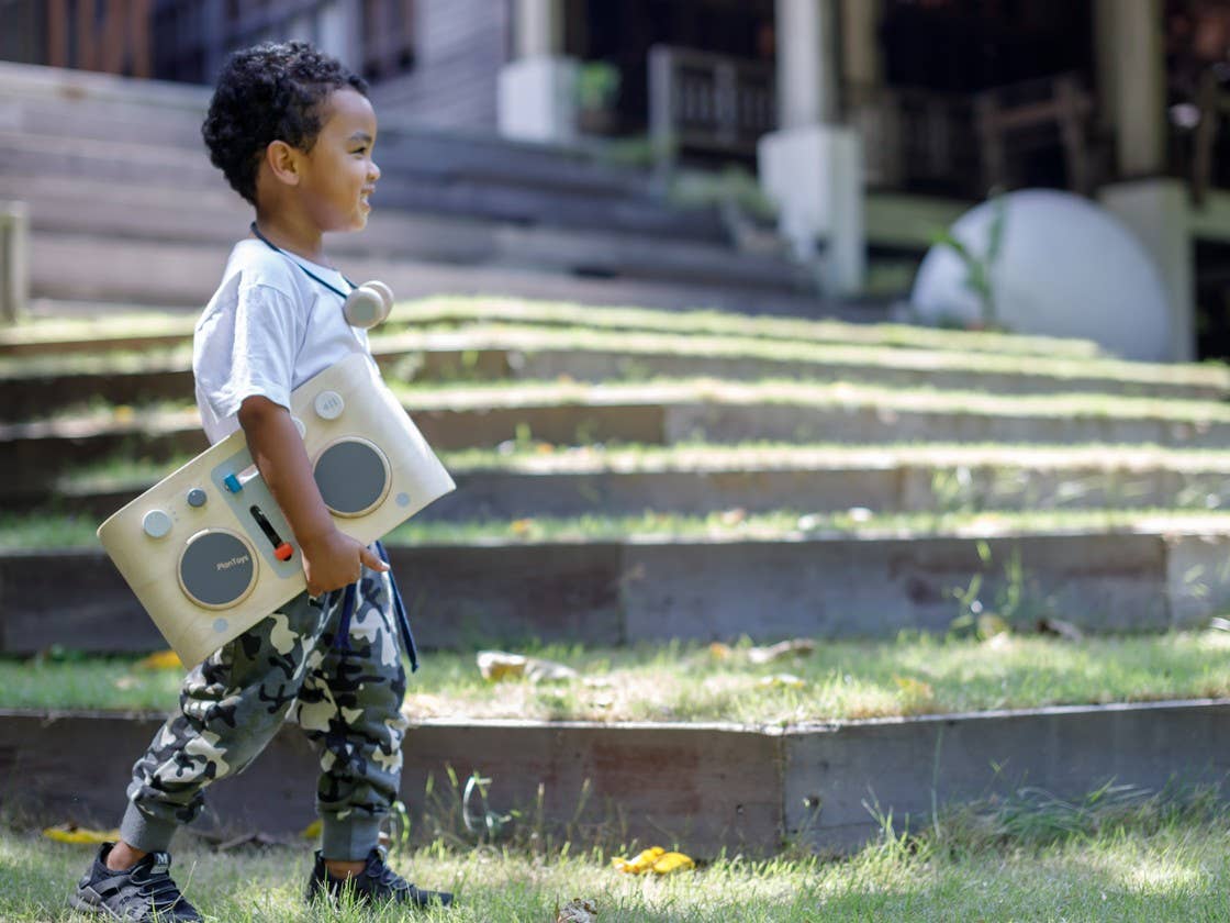 Become a professional DJ with the PlanToys DJ Mixer Board! This toy not only supports fine motor skill development through role play, but also invites children to practice their color recognition and implement creative thinking. Rotate the turntable discs just like a real DJ. Children can also slide the volume bar up and down, and toggle the many buttons to create unique mixes of your own!
