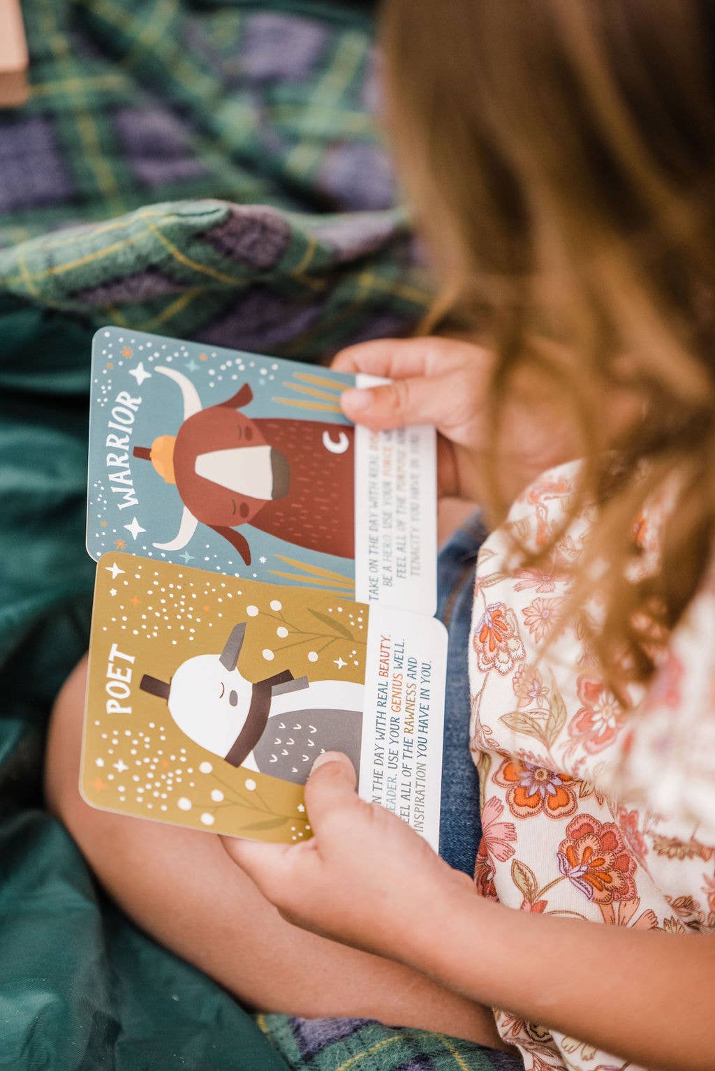 The Dream Big Archetypes Deck is the perfect tool for mystics of all ages! These adorably illustrated animal cards celebrate themes of kindness, strength, and empowerment. Each animal represents one archetype—or one attribute—to help one stay mindful and confident as they take on the day ahead. This deck will inspire meaningful conversations, help build self-esteem, and encourage kids to be kind to themselves and others. The Dream Big Archetypes Deck includes a display stand for you to easily display each daily card on a nightstand, desk, or even on the kitchen table. 1 wooden display stand included.