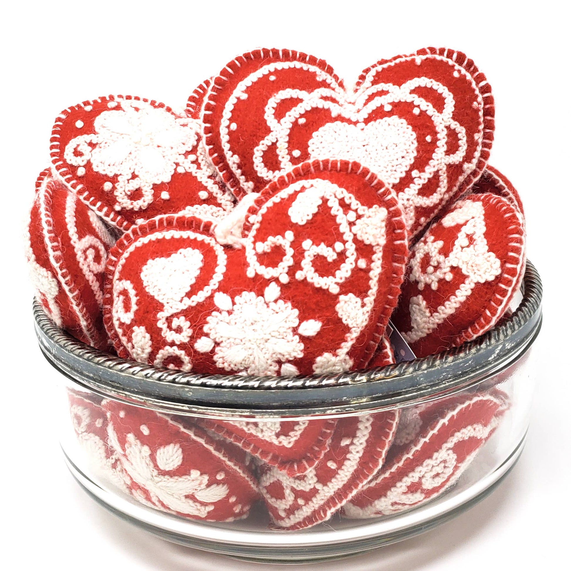 Embroidered heart ornament. Case pack includes 2 of each design.
