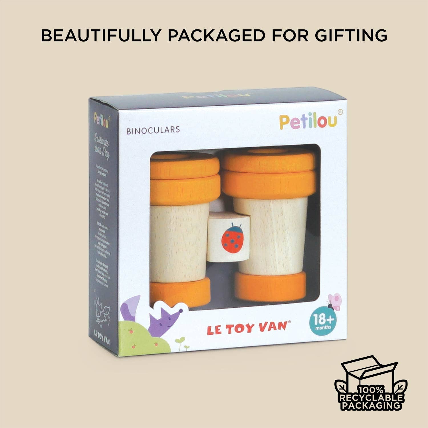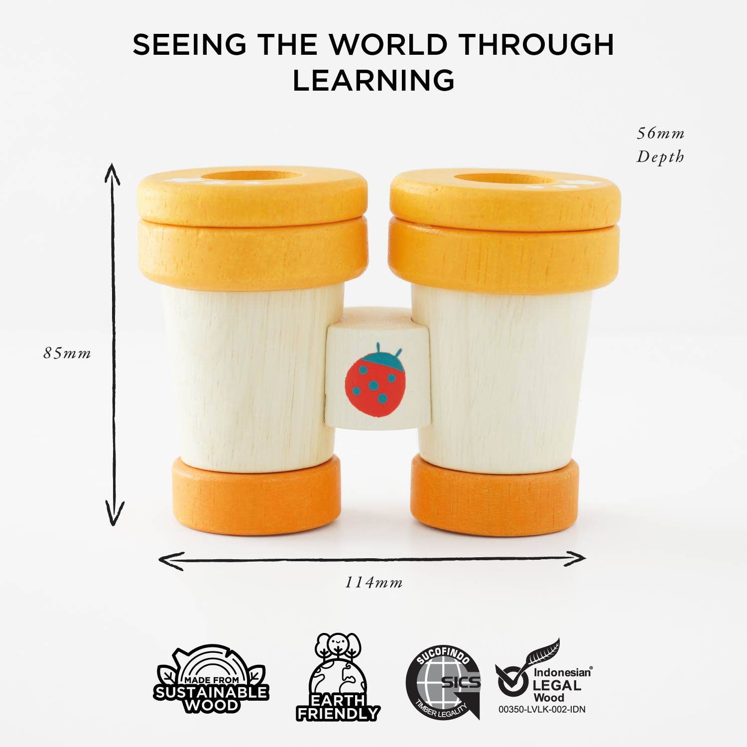 Inspire young explorers with these wooden binoculars that are ready and waiting for adventures. This pretend play toy is adorned with sweet illustrations of a ladybird and pretty floral motifs and features two spinning kaleidoscopic lenses for multi-sensory learning-based fun. Painted in bright and fun colors to stimulate imaginative play and designed to aid in development of fine motor skills.
