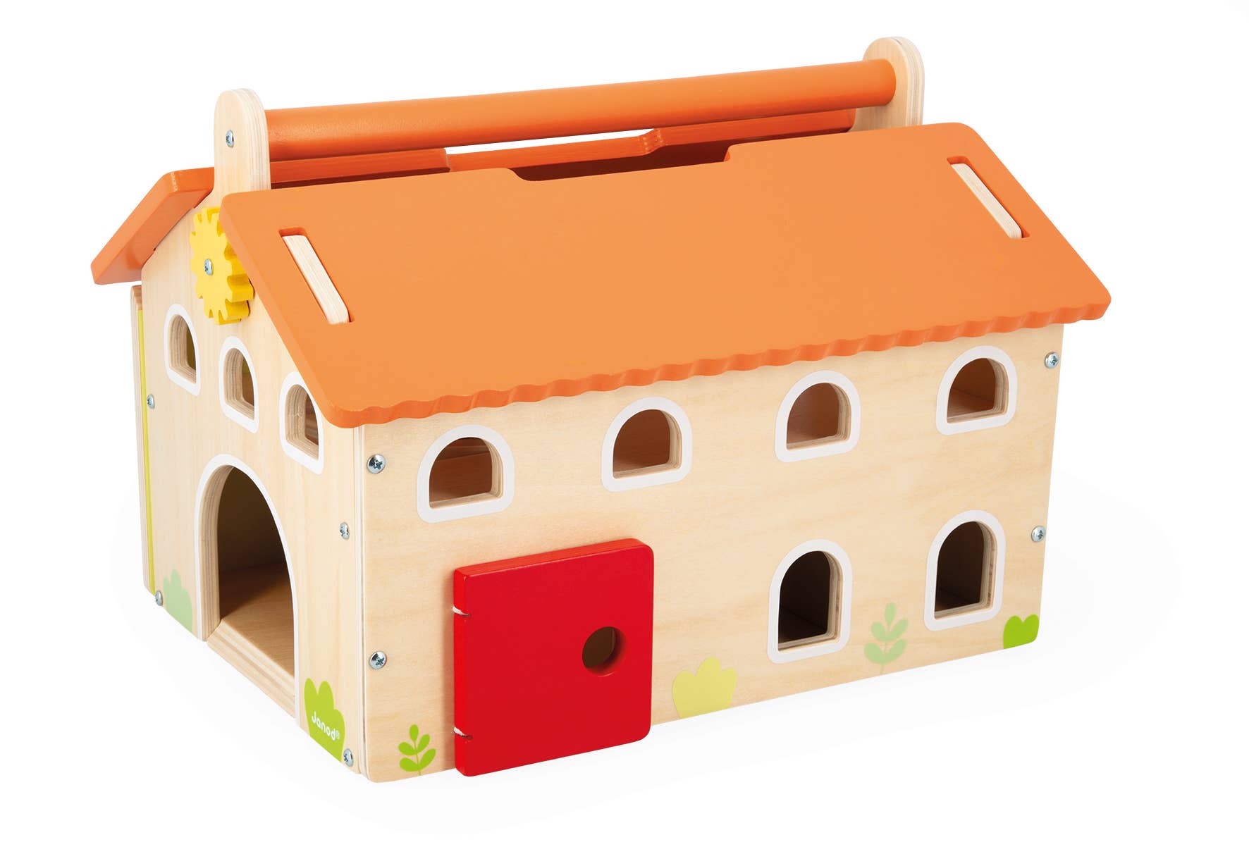 Welcome to the farm! It’s time to tend to the animals: the donkey, sheep, rabbits, hen, cow and her calf, are all patiently waiting to be fed. Hurry! The tractor is on its way! Little ones are tasked to lower the hay bales via the pulley system, unload them and then carry them out to the field. Have you seen Biscuit the cat? He is hiding behind the door! When the sun starts to set, Max the dog alerts everyone that it’s time to come inside and get warm. The sliding doors can be opened wide to let all the animals in. This magnificent wooden farmhouse comes with 10 animals, 5 bales of hay and a tractor with a magnetic trailer. In addition to the multiple accessories, several pieces of equipment are also supplied: a pulley system that goes up and down, sliding doors and an elastic-hinged door.