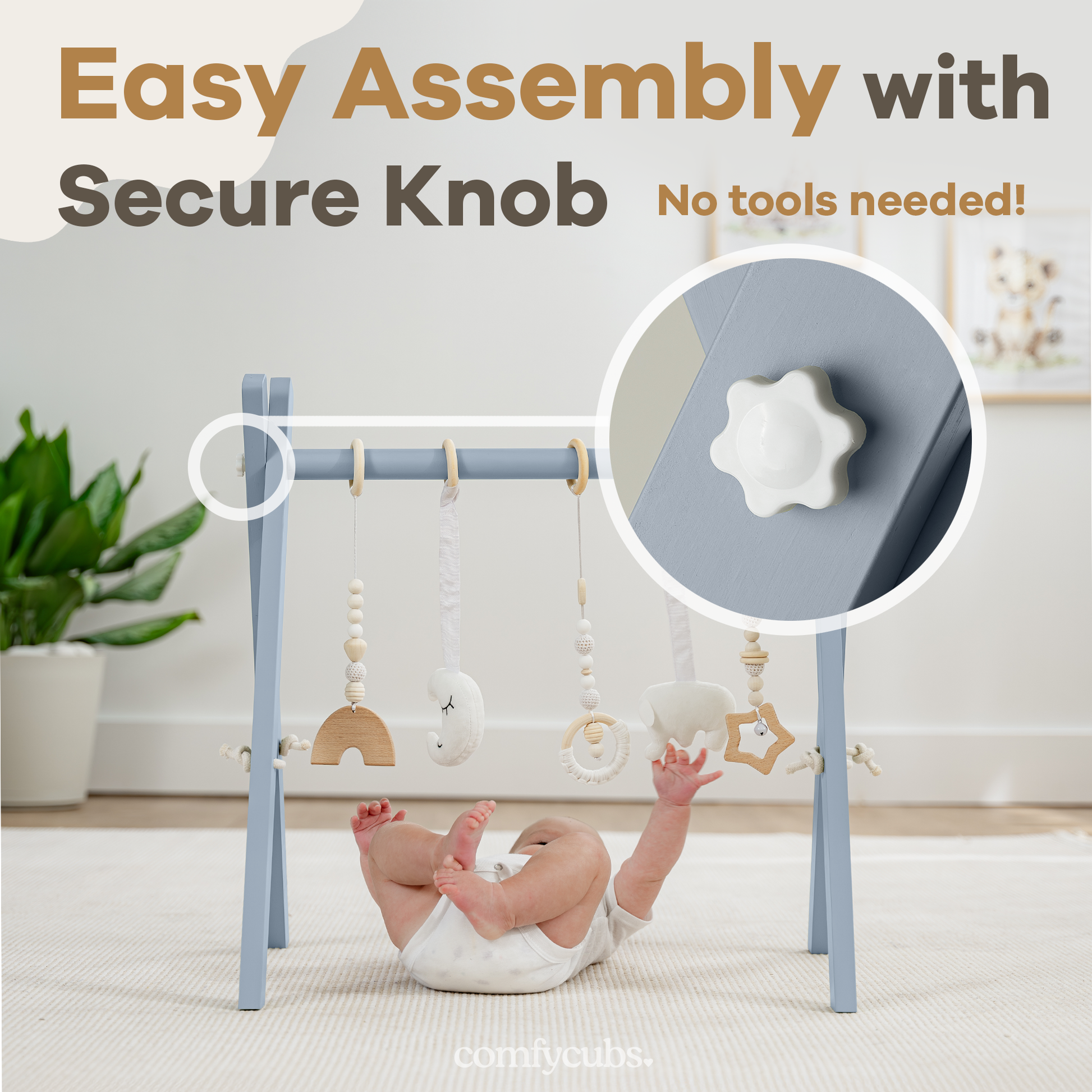 Foldable Baby Play Gym with 5 Hanging Toys by Comfy Cubs: Blush