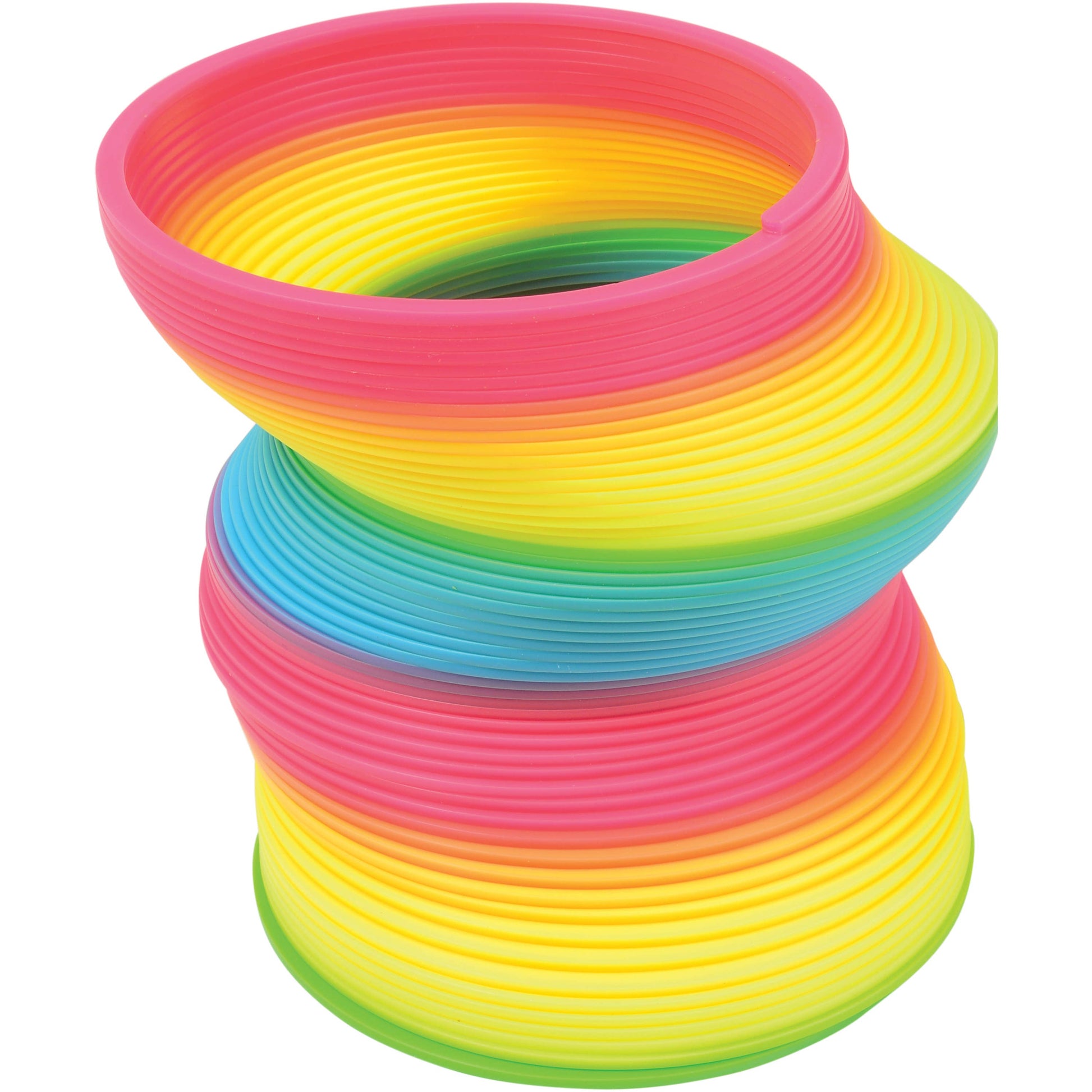 Experience the joy of timeless play with the Giant Rainbow Spring from US Toy Company. This classic toy is not just any spring, it's extra huge and flaunts vibrant colors of the rainbow, making it an eye-catching piece in your child's playroom. Perfect for kids who love to explore and engage in physical play, it's designed to provide endless fun and stimulate creativity. This toy is a testament to our commitment to continue the vision of our founders, Frances and Elvin Klein, in providing high-quality, novelty toys. Enjoy the nostalgia and share the joy of simple play with your child with our Giant Rainbow Spring.