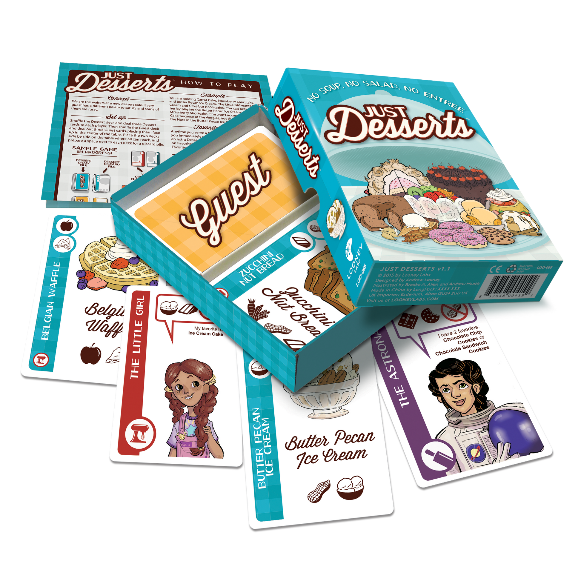Looney Labs has created a sweet card game all about serving some very picky guests. Compete with your fellow waiters to serve guests their favorite goodies before someone else gets to them first. If you can serve a desserts with all of a guest’s favorites, the guest will come to your table. Get three guests in the same suit or five guests in different suits sitting at your table and you win! Calories per serving: 0.