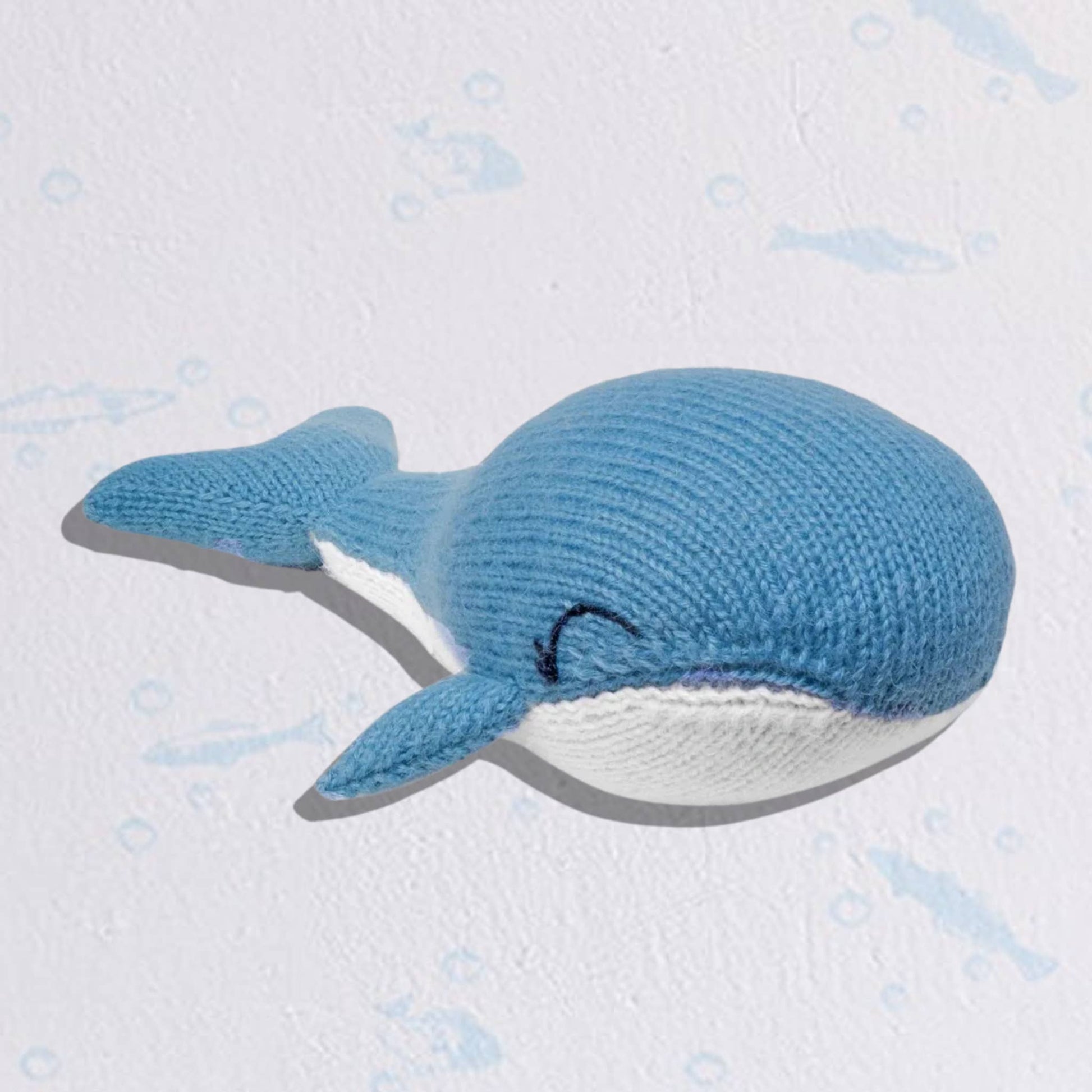 Did you know the tongue of a blue whale can weigh as much as an elephant, and an entire football team could stand on it? You don't have to worry about getting crushed under this cuddly guy, though! He's hand-knit from alpaca, sheep and acrylic blend yarn by Peruvian artisans, created to bring a smile to anyone that's young... in age or at heart. * Alpaca, sheep and acrylic blend yarn * 8"L x 6"W x 4"H * 100% Poly fill * Shop other sea animals: Narwhal, Crab, Axolotl, Turtle, Blowfish, Seal & Octopus Alivicha // Peru Alivicha provides artisan jobs to women in rural areas in addition to campaigning for women's sexual, reproductive, political, social, and economic rights. The money earned from the sale of this and other products is the only reliable source of income that the artisans earn.