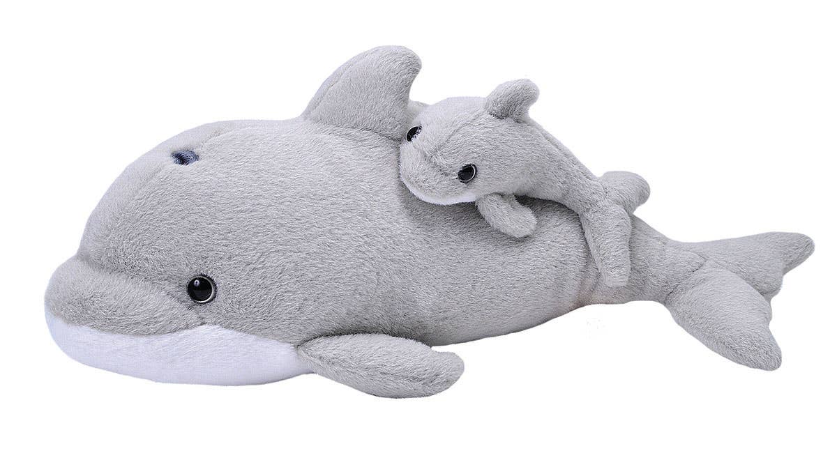 Dive into the world of ocean wonders with the Mom & Baby Dolphin by Wild Republic. This delightful stuffed animal captures the grace of dolphins with its lifelike design. Crafted with meticulous attention to detail, it brings the magic of marine life into your home. It's the perfect gift for animal lovers of all ages. Start your journey of discovery today and let your imagination roam free!