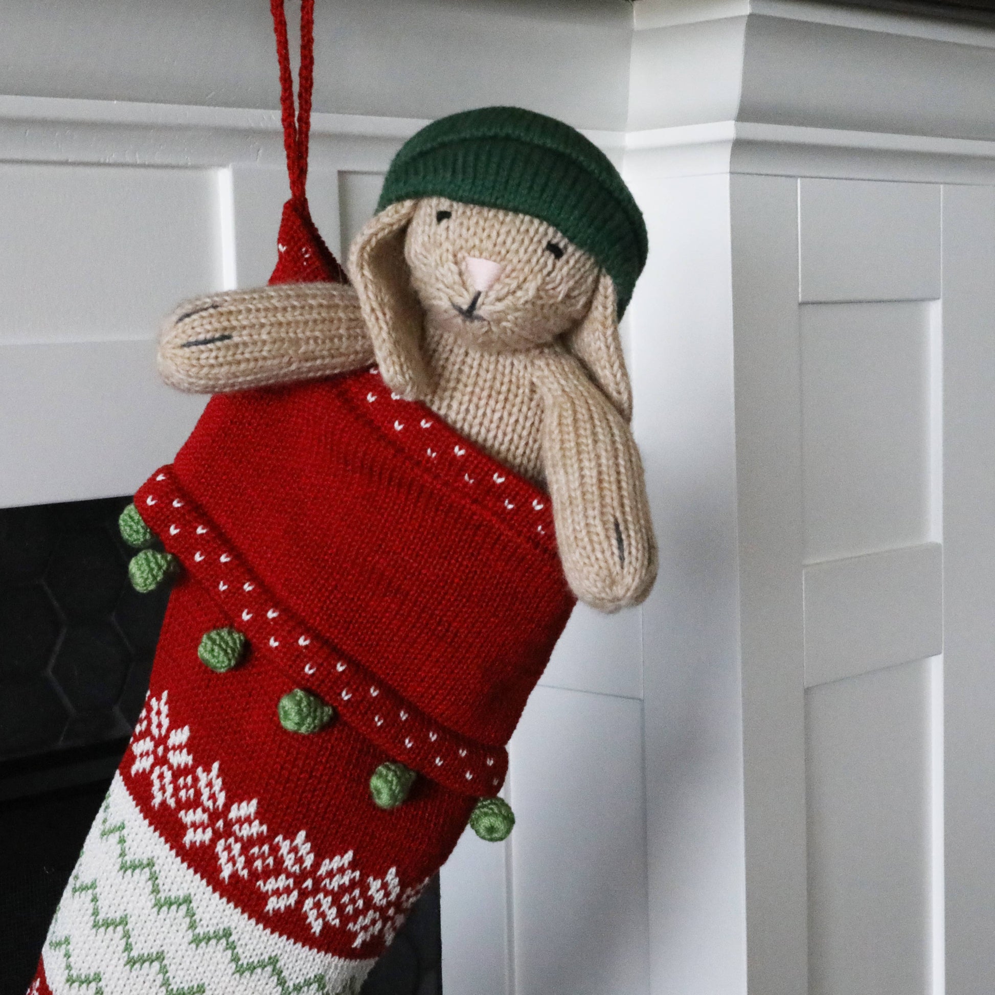 Smooth-cuff Nordic style stocking w/balls & stitching - red & ecru w/green