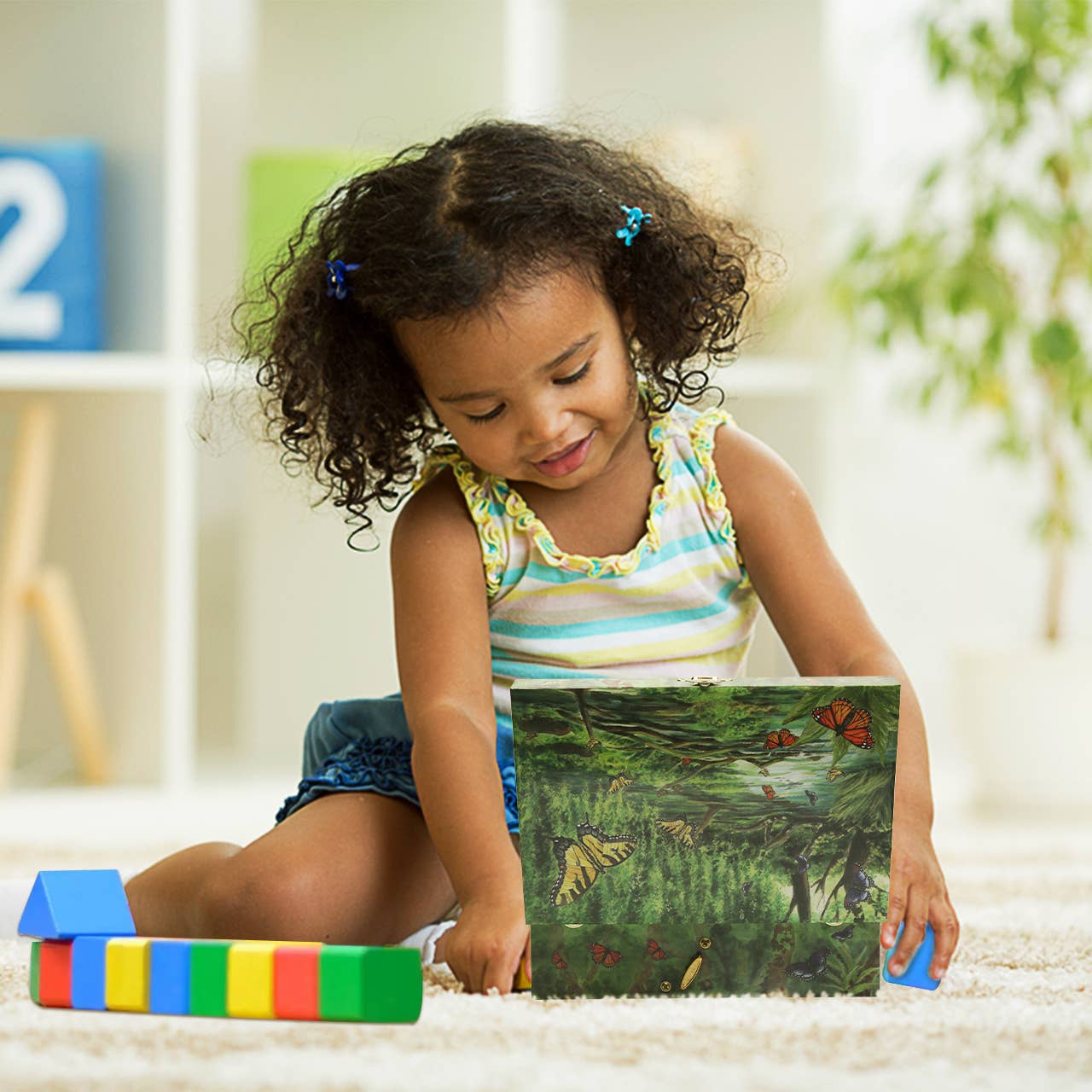 Beautiful and Versatile – Children's Butterfly bedroom decor boxes feature fancy velvet flocked paper lining and watercolor outer finish, adding a delightful accent to a child's room. Whimsical water-colored illustrations foster art appreciation and spinning butterfly figurine.