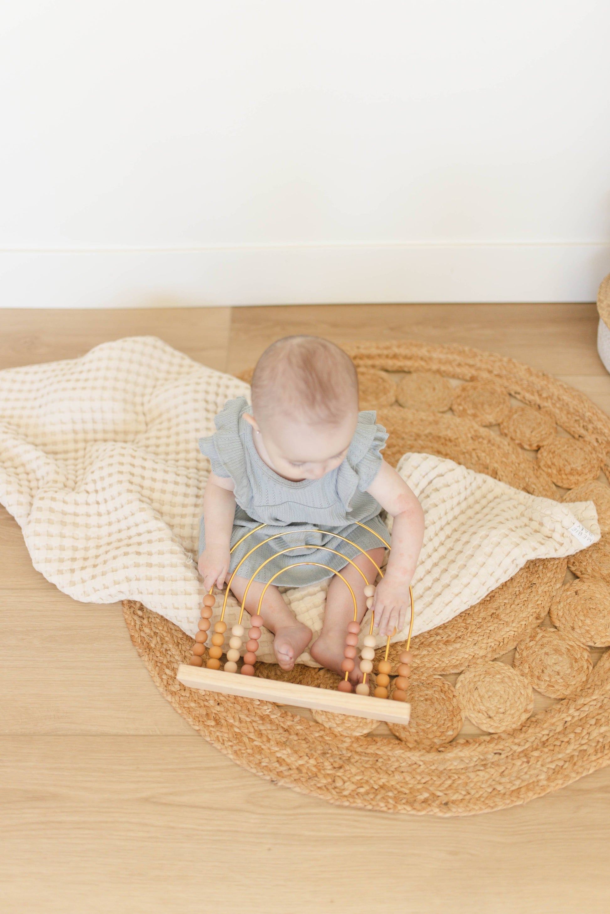 Beautifully designed with natural hues and a playful boho rainbow pattern, this abacus perfectly compliments gender neutral nurseries and playrooms. Add a stylish touch with this multifaceted piece that marries nursery decor, playroom enhancement, math and hand eye coordination. A boho chic STEM toy kids of all ages will love.