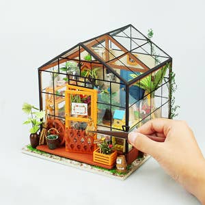 Cathy's Flower House is the hottest DIY miniature dollhouse ever! It mimics a well-designed transparent glass greenhouse with so many beautiful plants and flowers. Open the door, walk into the bright garden and breathe its fresh air. It is like a dream garden house in real!