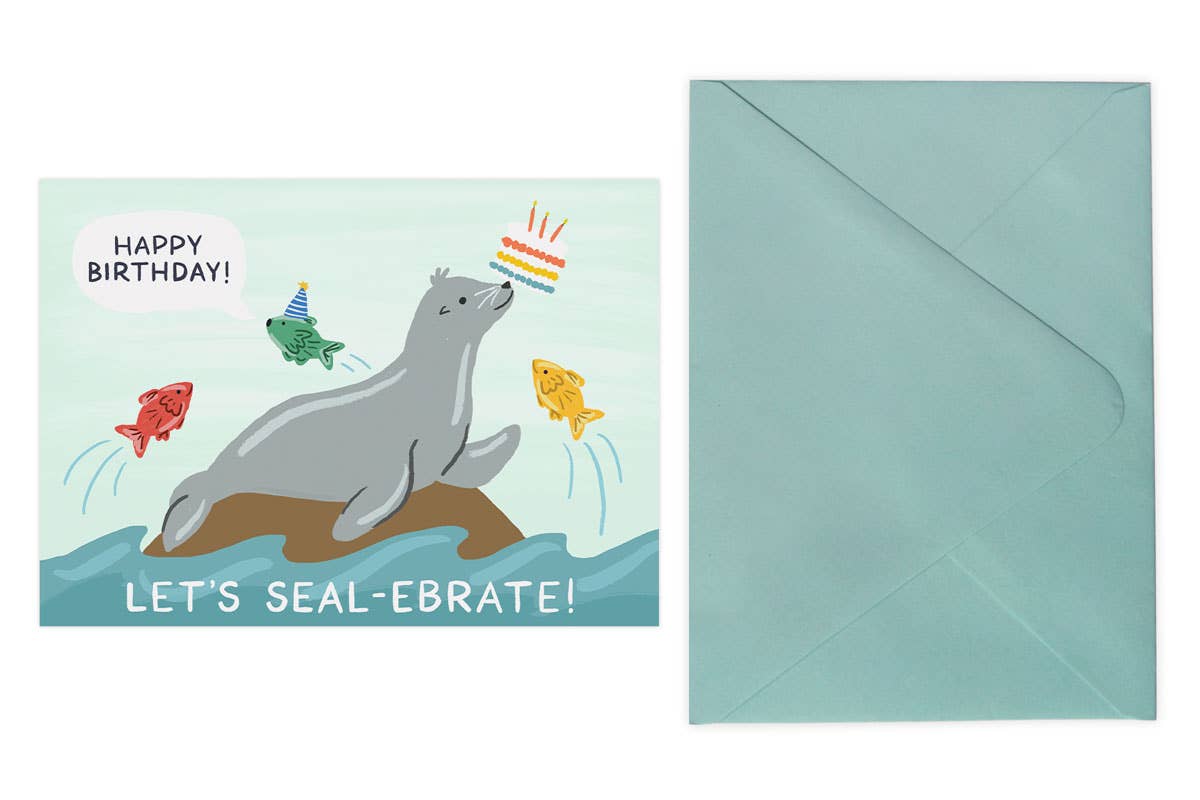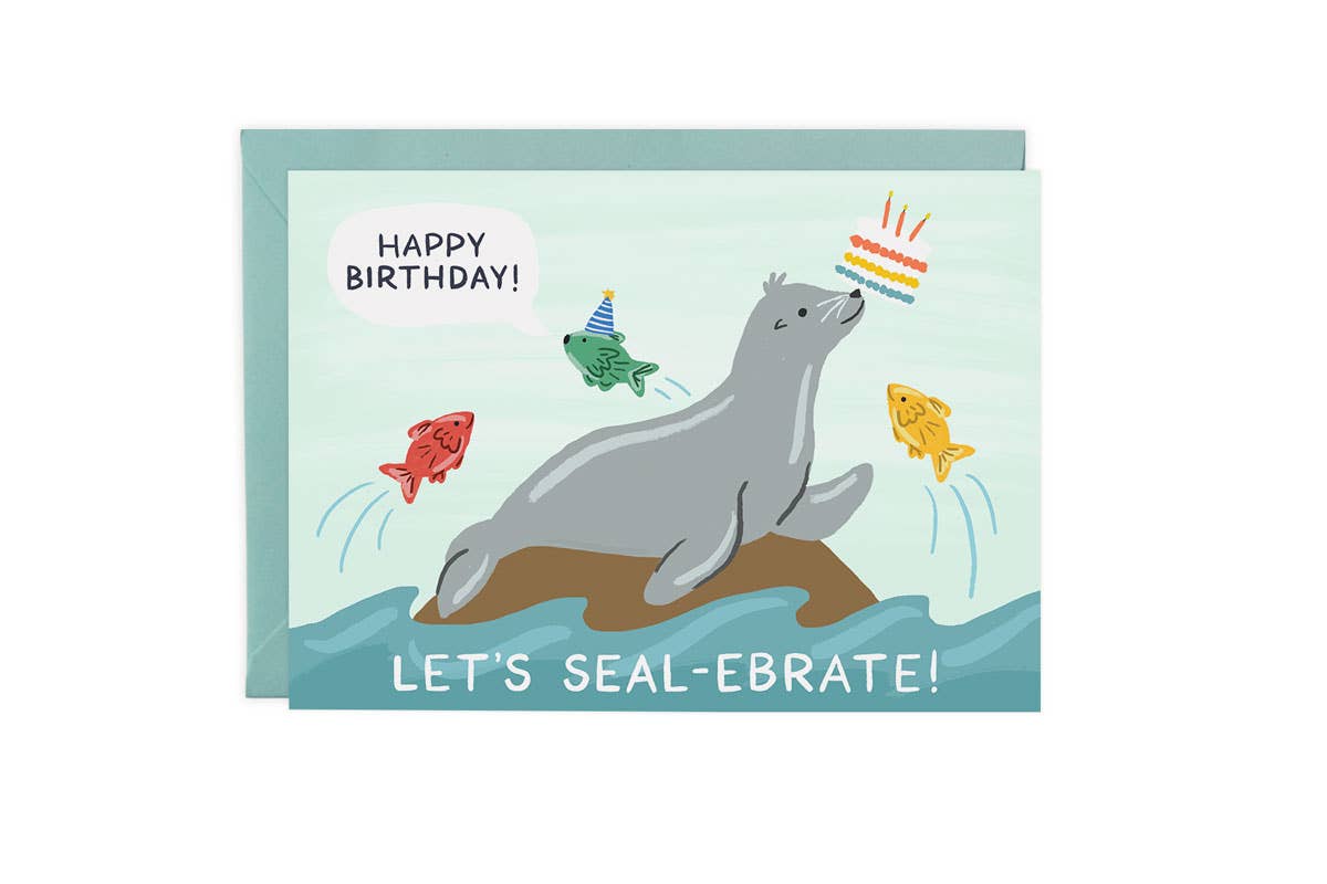 This ocean-themed card is perfect for celebrating any birthday! The seal balances as birthday cake on its nose as the jumping fish wish a "Happy Birthday!"