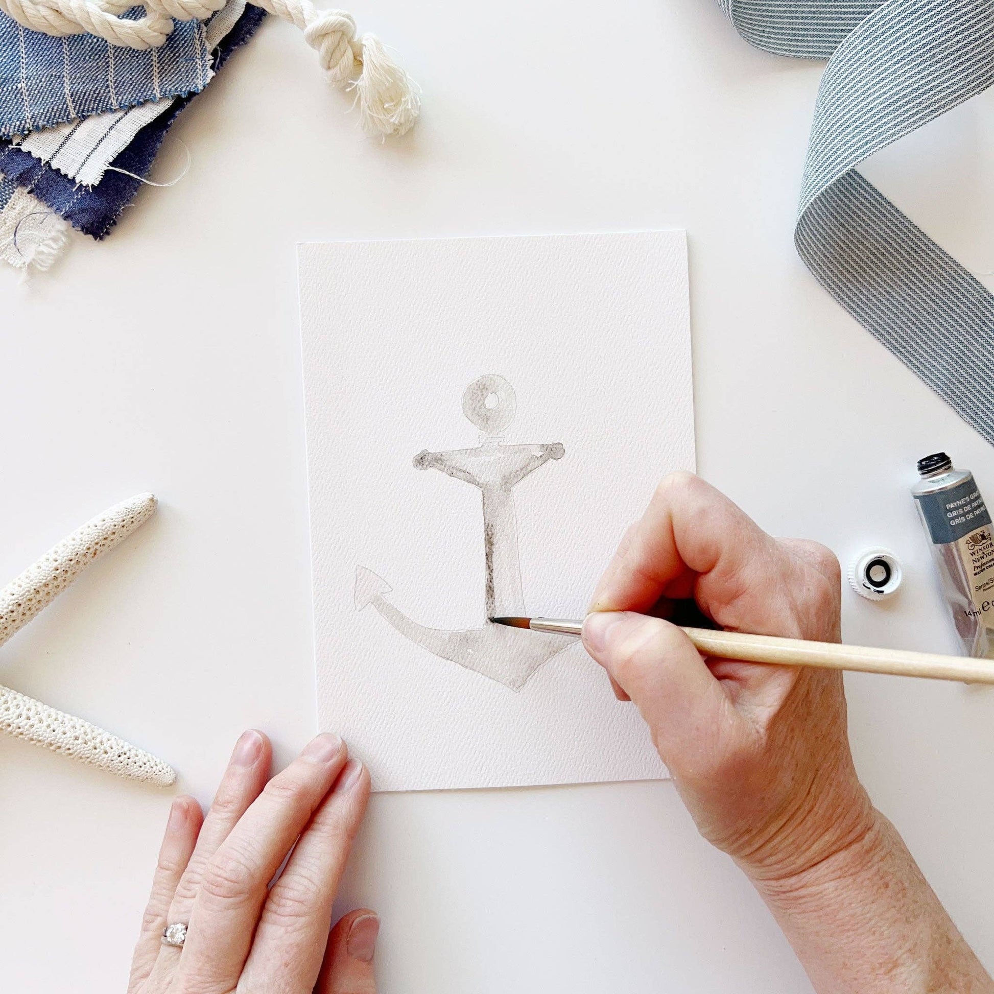 Paint your own special note cards! Sketches are printed on the front of each card with simple instructions for you to paint in with watercolors. You'll receive eight cards with two of each illustration: whale, sailboat, lighthouse and anchor. Perfect for artists of all ages!