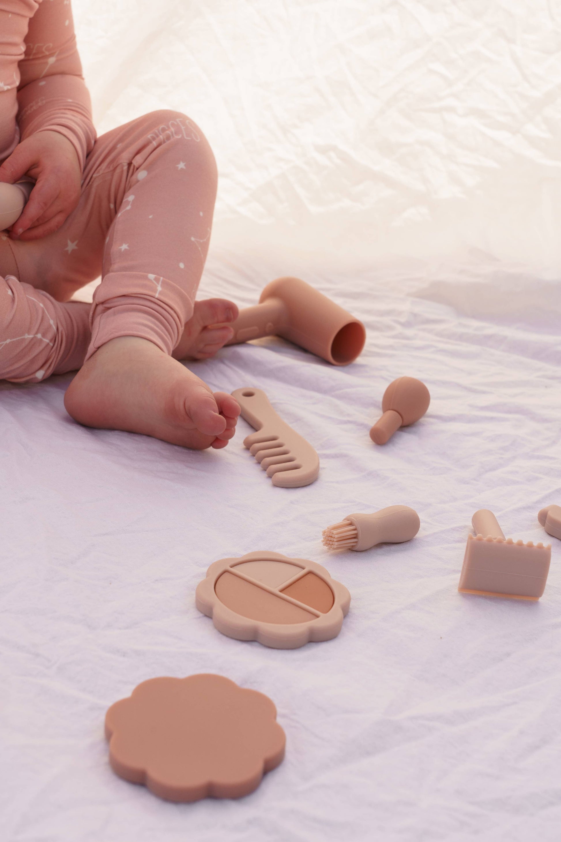 Play pretend and pamper your little one with our Silicone Salon Kit. Featuring hair and make up products, this fun kit helps your toddler learn to imitate your every day routine.