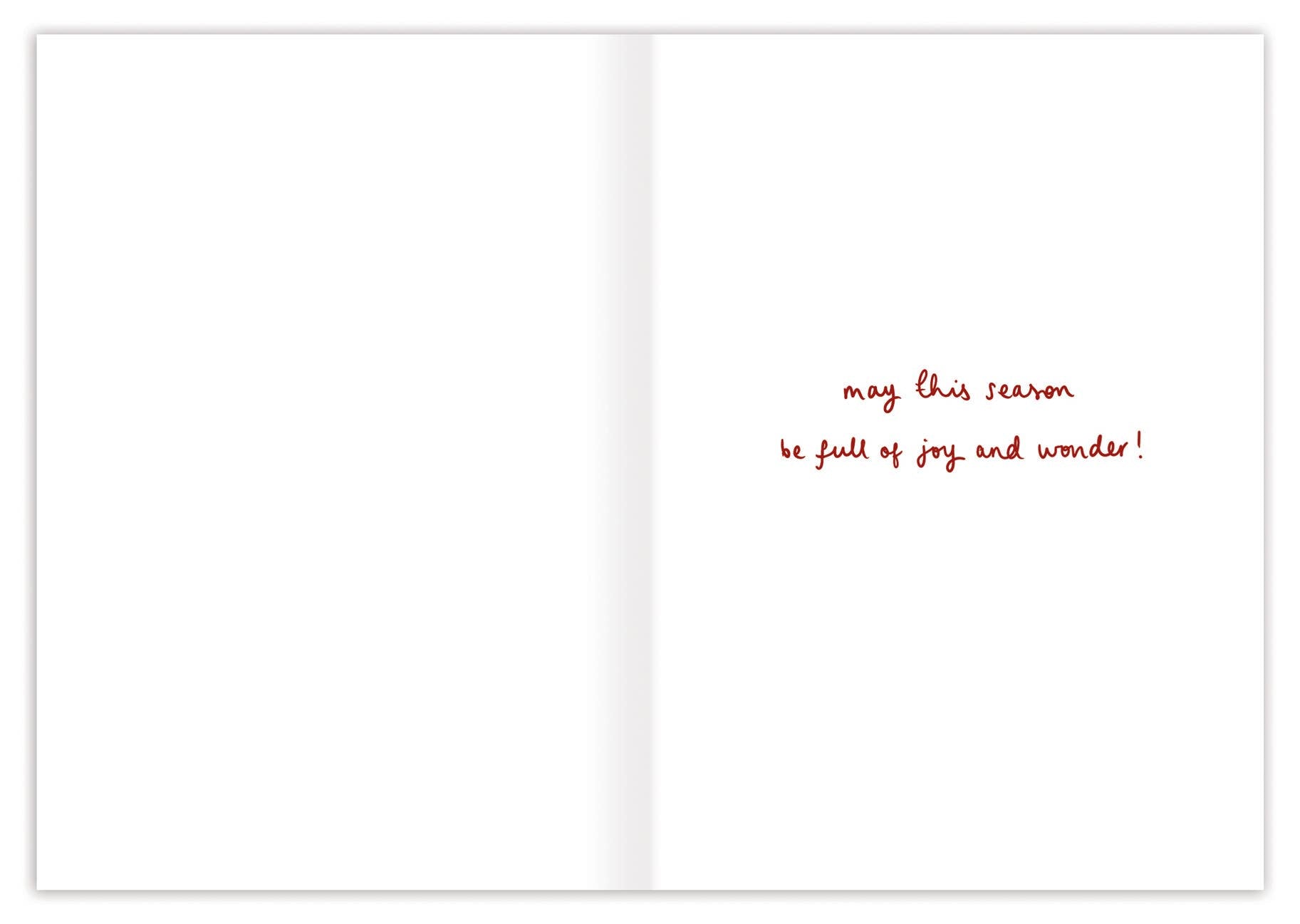 Inside verse: May this season be full of joy and wonder! • Gold foil details • Illustrated by Louise Mulgrew • Pre-priced • Size: A6, 4.5" x 6.25" • Paired with Brown Kraft envelope • Printed in the USA on high-quality, recycled paper