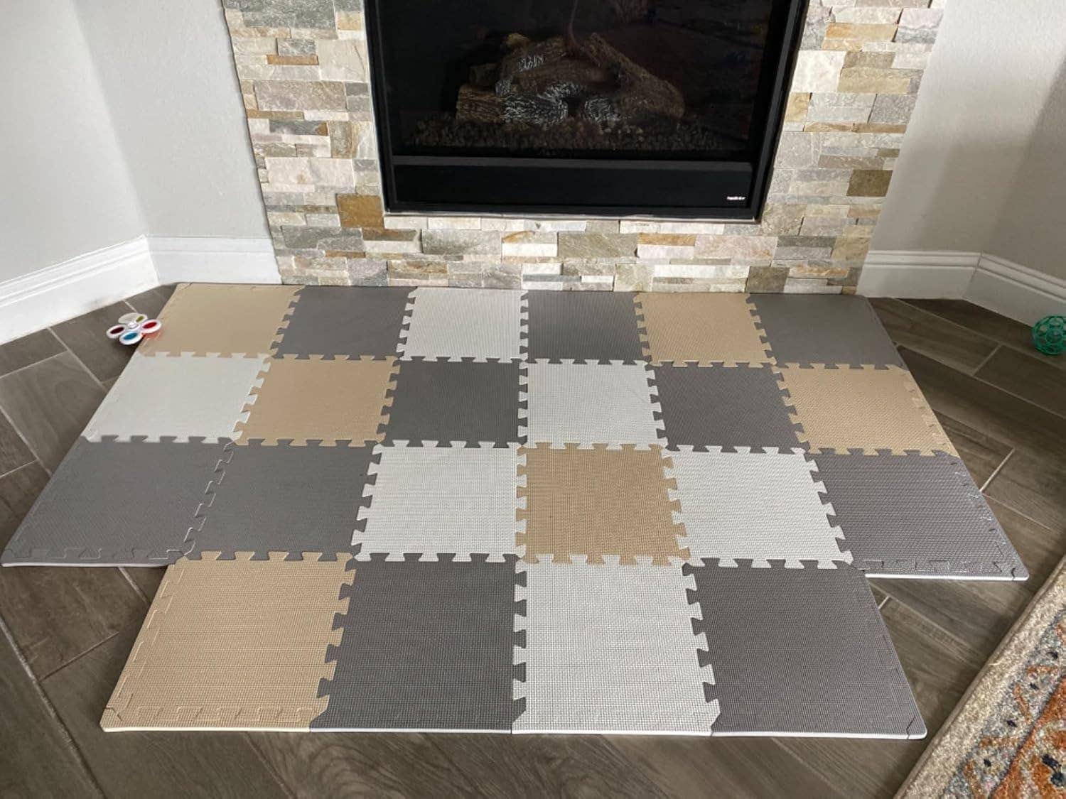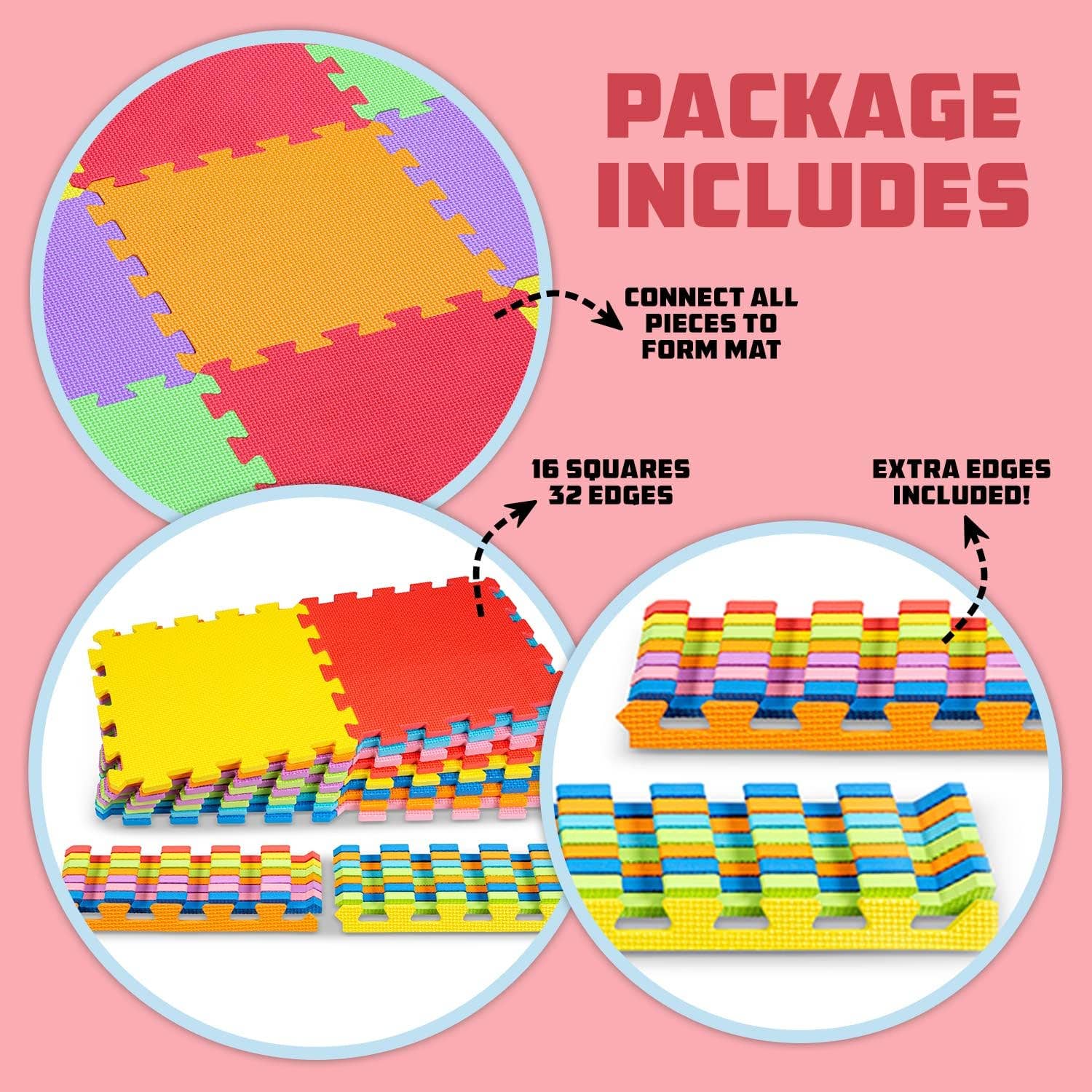 Foam puzzle piece floor mat is composed of safe & ultra-soft non-toxic EVA foam for optimal child protection and durability. Square Dimensions: 12” x 12”, Thickness: 0.4”.