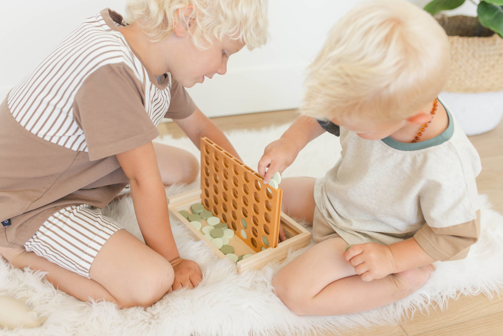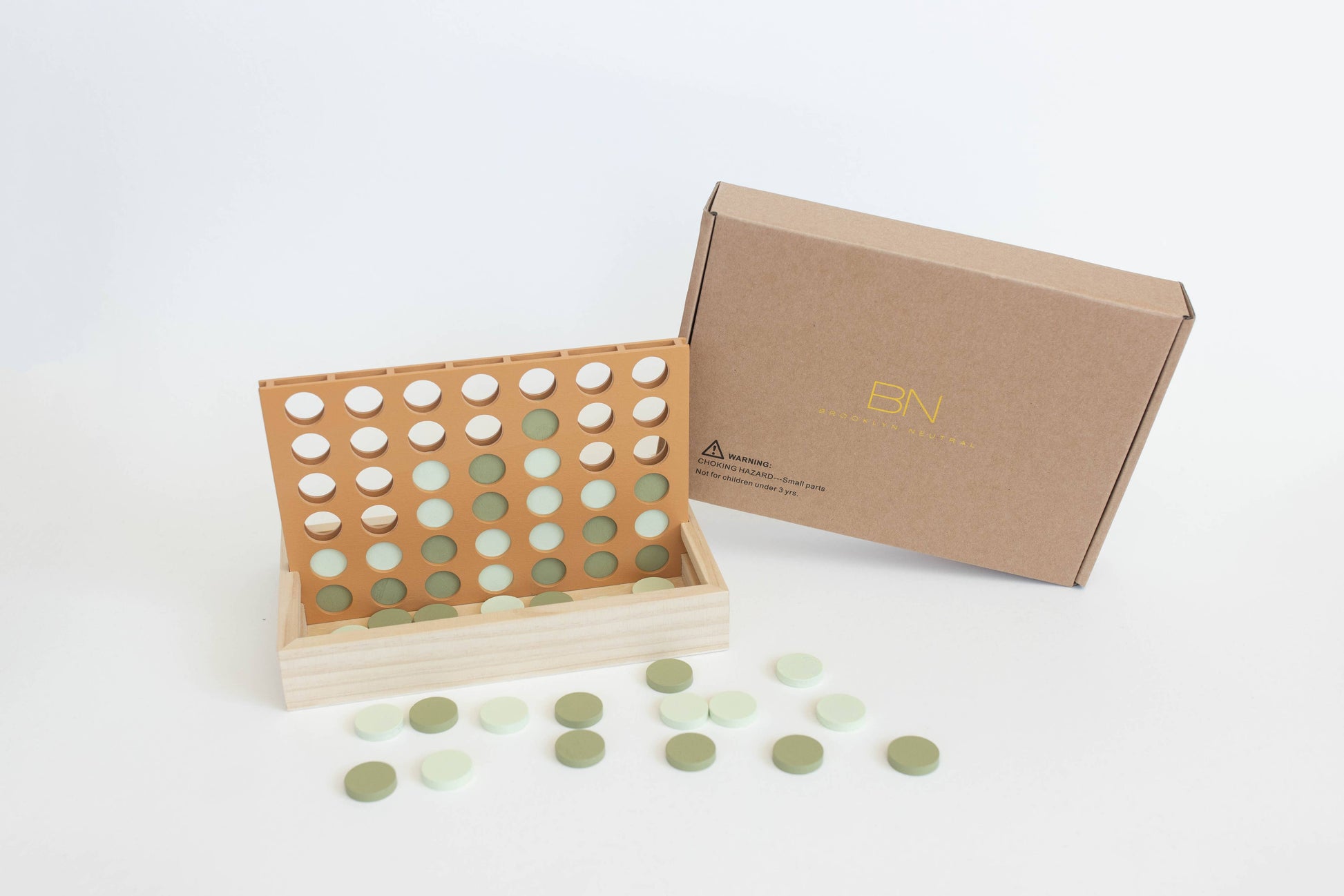 A classic game with a modern touch! This wooden four in a row game is great for any outing, travel or a cozy day at home! It's compact and the perfect size to double as coffee table decor. Adults as well as kids will love this addition to any living or guest room and the neutral colors allow the game to blend into many different decor styles.