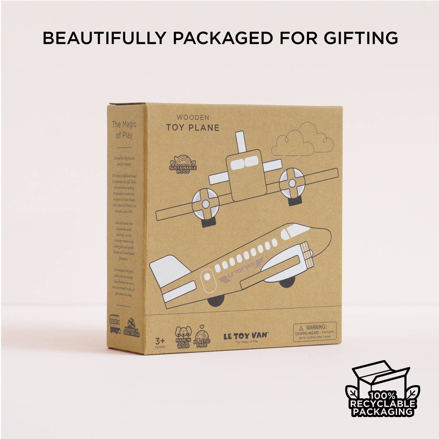 It has spinning propellers and is crafted from FSC® wood which is exposed to show its natural grain and beauty. Embellished with engraved details and white accents, embark on a flight of aesthetic delight.