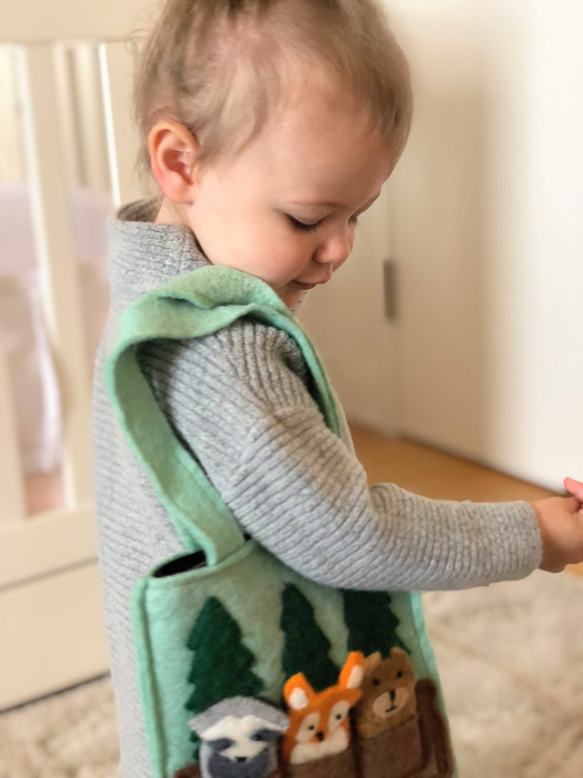 This dual-purpose tote is the perfect gift for any animal-loving child. Handcrafted from Nepali felt, the adorable bag features three removable, felt animal finger puppets. The raccoon, bear and fox are sitting in the woods just waiting for a playmate!